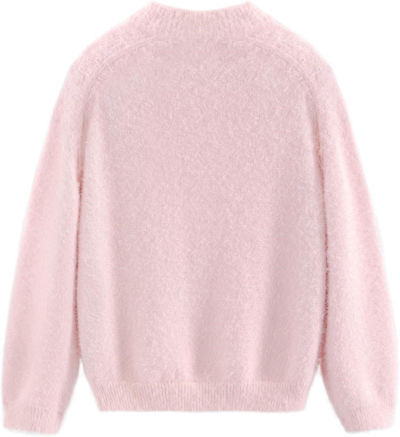 Aelfric Eden Fuzzy Soft Sweaters Mohair Oversized Solid Sweaters Crewneck Knit Casual Pullover 2025 Trendy Outfits(Pink)