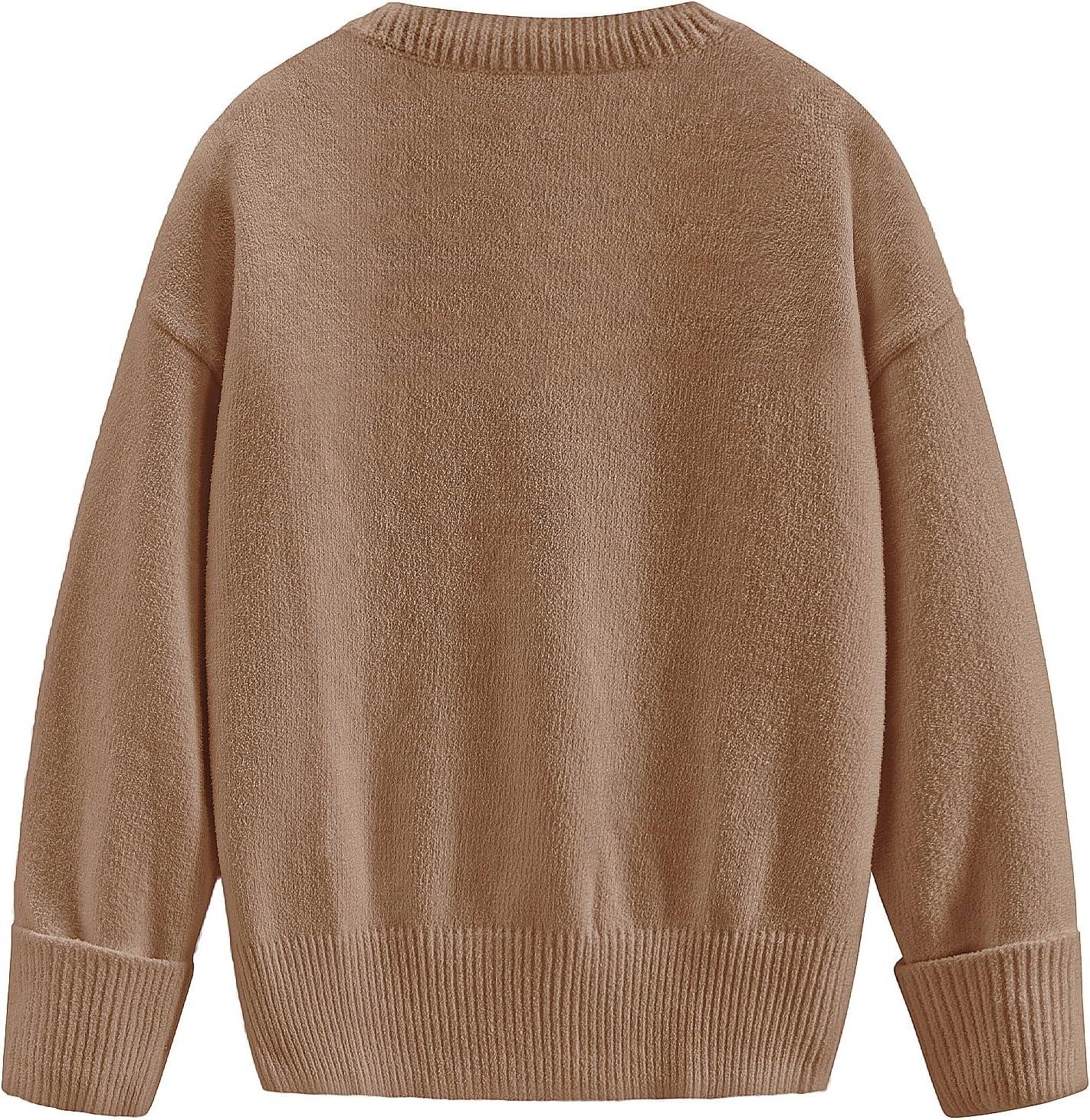 Aelfric Eden Women Oversized Basic Sweaters Vintage Crewneck Long Sleeves Knit 2025 Pullover Sweater Tops(Khaki)