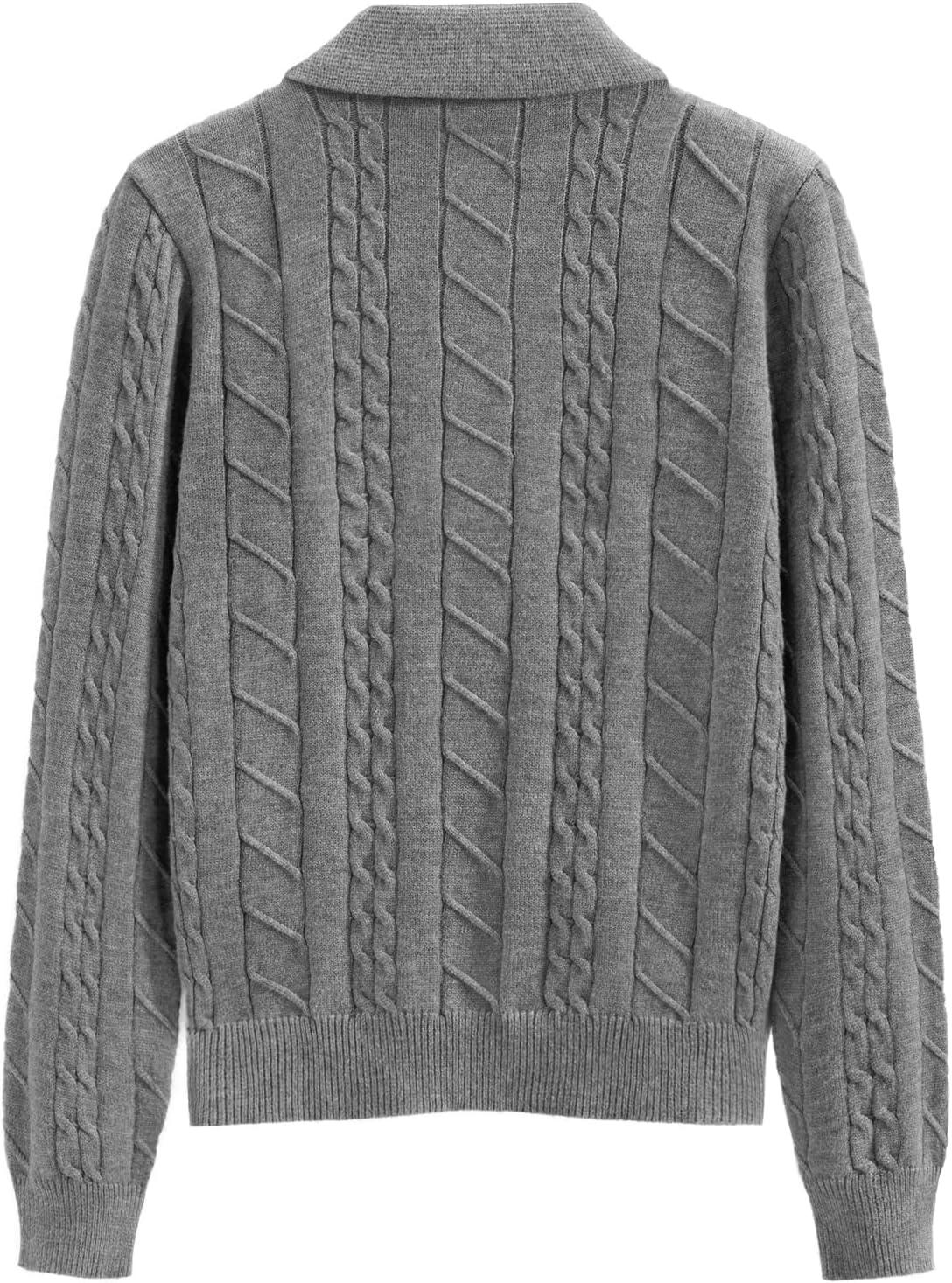 Aelfric Eden Women’s Cable Long Sleeve Sweaters Solid Lapel V Neck Knit Casual Soft Pullover 2025 Fall Fashion Outfits(Grey)