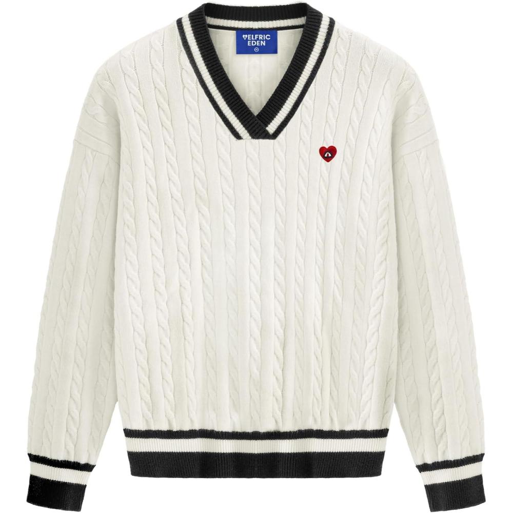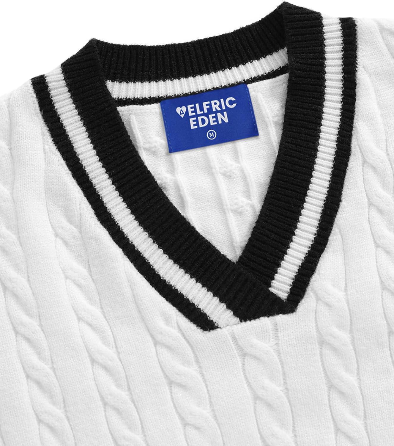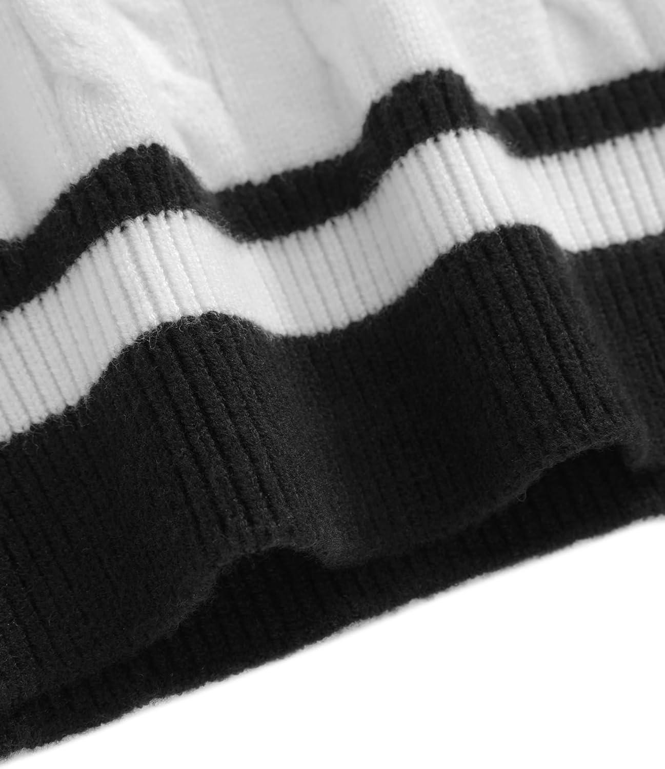 Aelfric Eden Women’s Oversized Cable Knit V Neck Sweaters Oversized Pullover 2025 Fall Fashion Outfits(White&dark Blue)