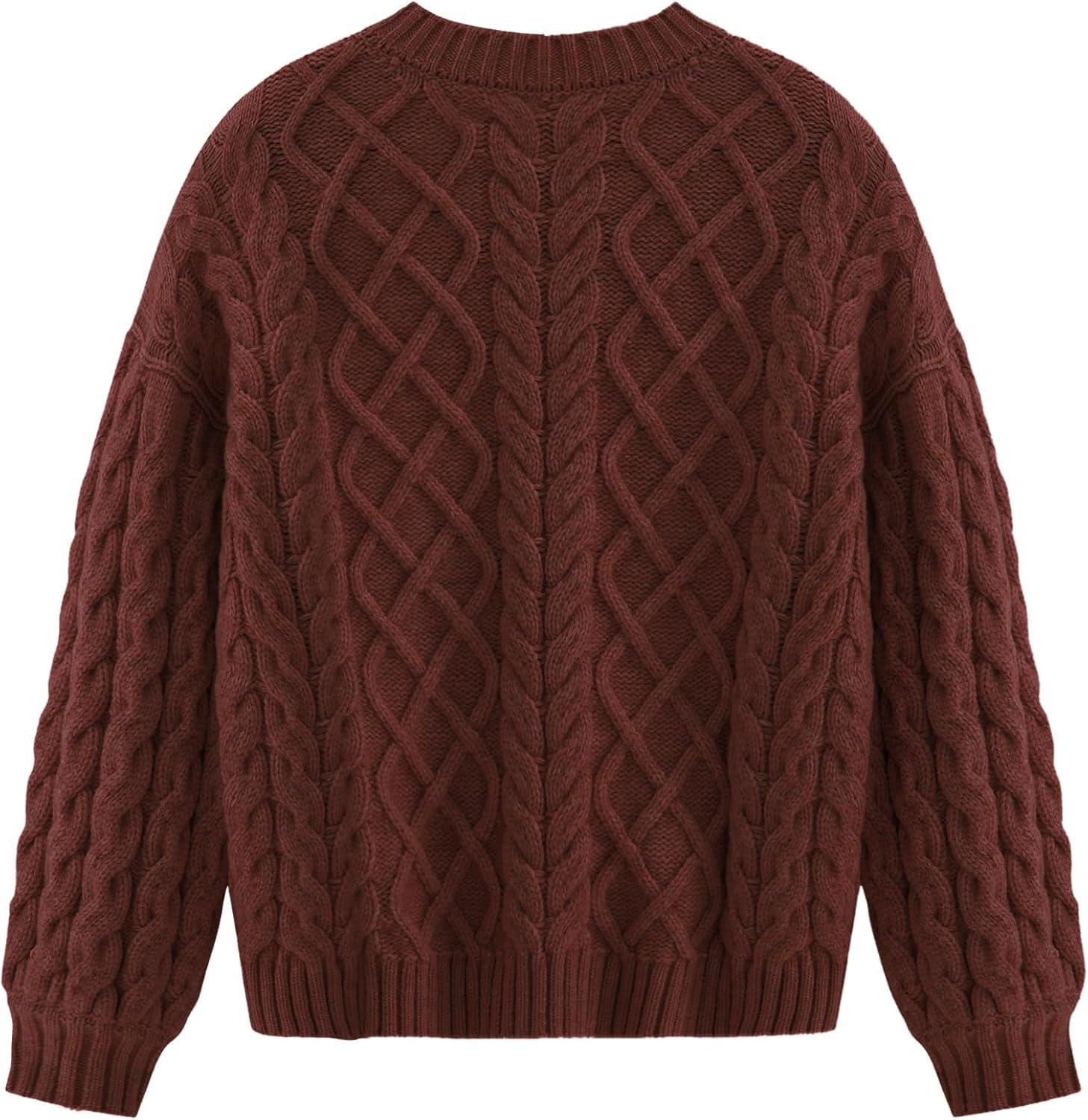 Aelfric Eden Womens Oversized Sweaters 2025 Cable Knit Chunky Sweater Lantern Sleeve Crewneck Pullover Loose Outfits